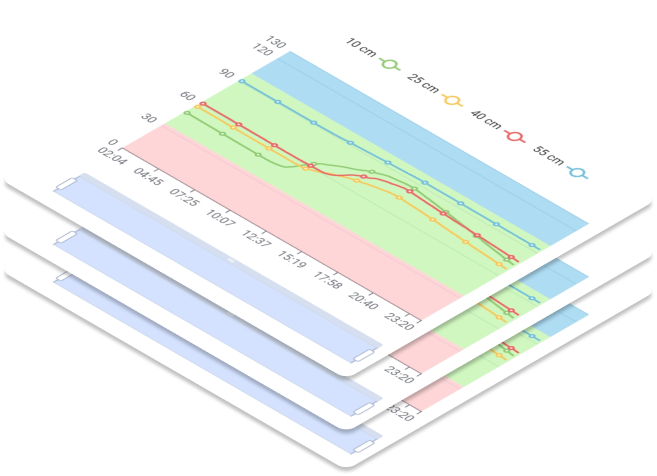 AquaEdge permet une surveillance constante de l'humidité du sol à différentes profondeurs, offrant ainsi une vision précise de l'état du sol dans vos parcelles.